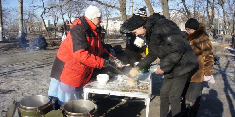 По благословению настоятеля Успенского храма епископа Иннокентия помощь от прихода получают жители Владивостока, имеющие доходы ниже прожиточного минимума или совсем оставшиеся без средств к существованию. Только за январь этого года общиной было организовано 40 выездов в район площади Луговой и железнодорожного вокзала Владивостока. А в феврале раздача бесплатных обедов проводилась уже два раза в день, пять раз в неделю. Контейнеры с питанием выдавались из мобильных передвижных пунктов раздачи обедов. За прошлый месяц Успенским сестричеством милосердия также была оказана помощь 2 человекам на приобретение билетов, 7 многодетным семьям. 30 семей получили благотворительные продуктовые наборы.