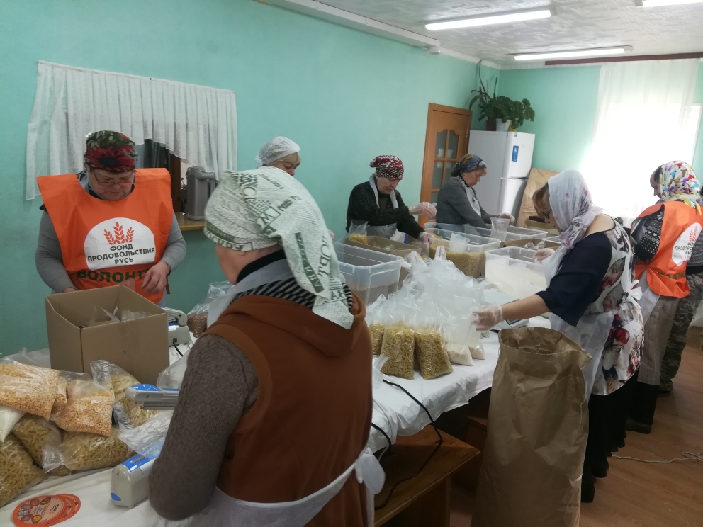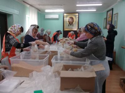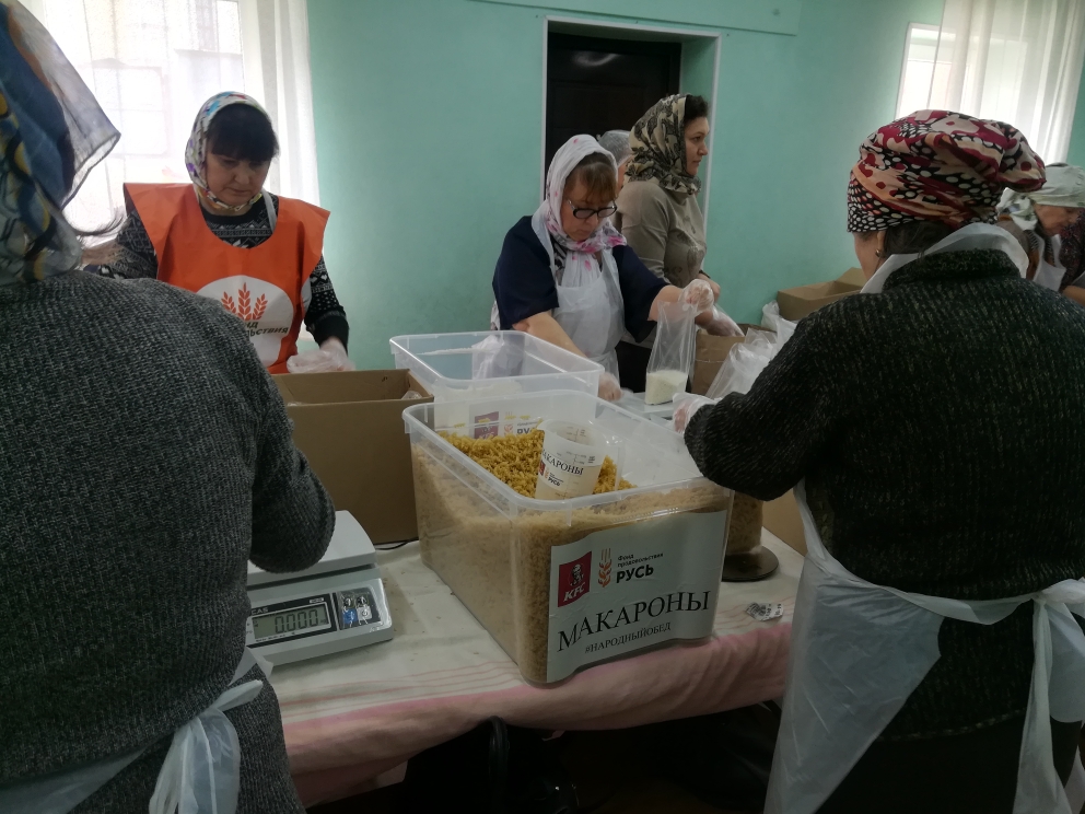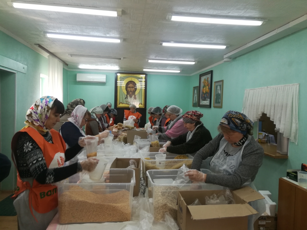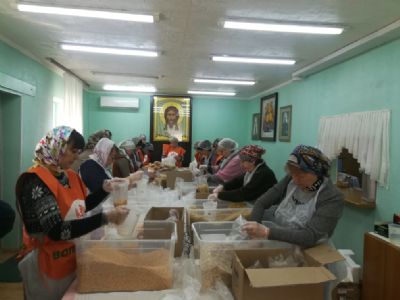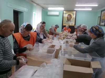 19 марта 2019 г. на приходе Покровского храма в рамках Всероссийского добровольческого проекта «Народный обед», который реализуют Фонд продовольствия «Русь» и Служба помощи «Милосердие» (г.Москва) прошла фасовка народных обедов.