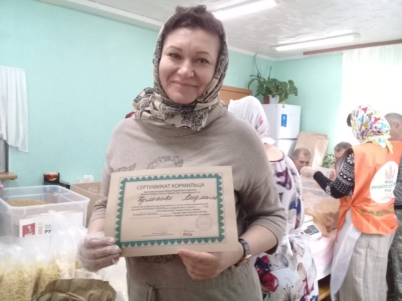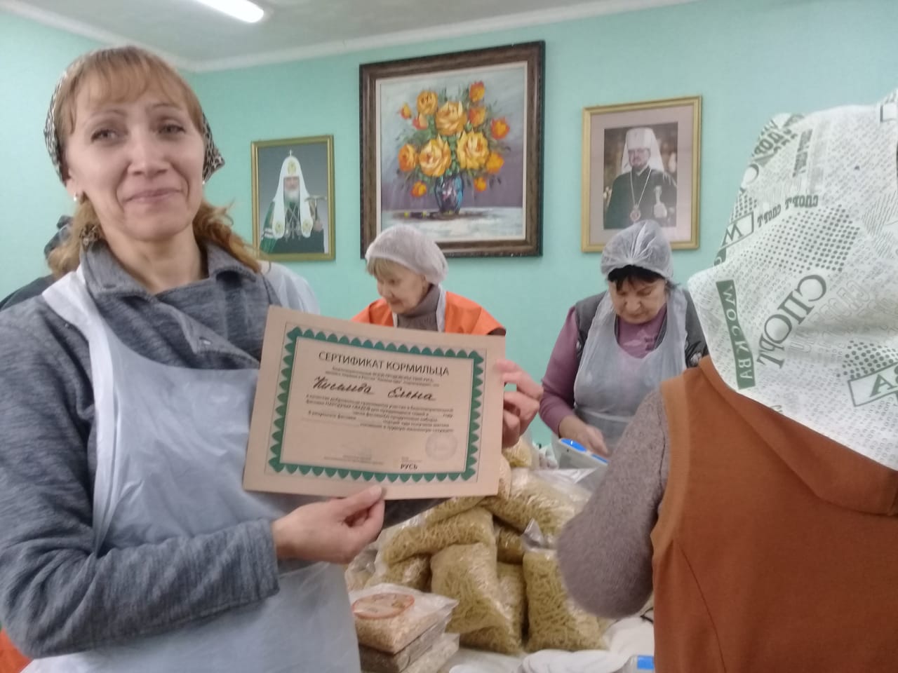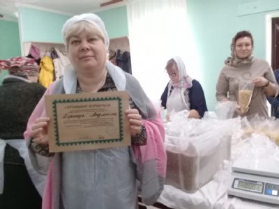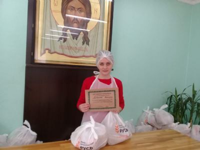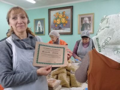 Активным добровольцам выданы Сертификаты кормильца от Фонда продовольствия «Русь». После фасовки в трапезной храма добровольцев накормили вкусным обедом.