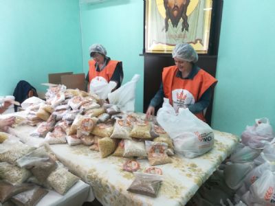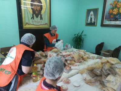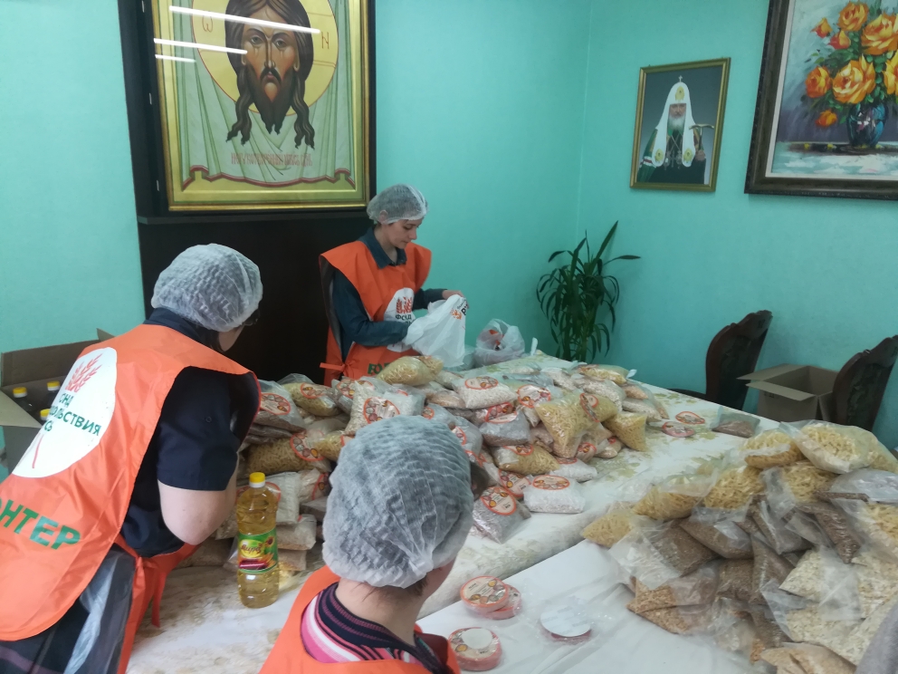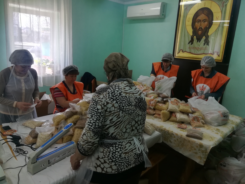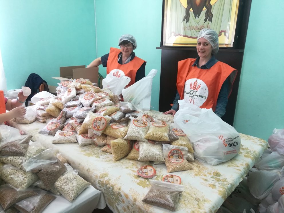 17 апреля 2019 г. на приходе Покровского храма в рамках Всероссийского добровольческого проекта «Народный обед», который реализуют Фонд продовольствия «Русь» и Служба помощи «Милосердие» (г.Москва) прошла фасовка народных обедов.