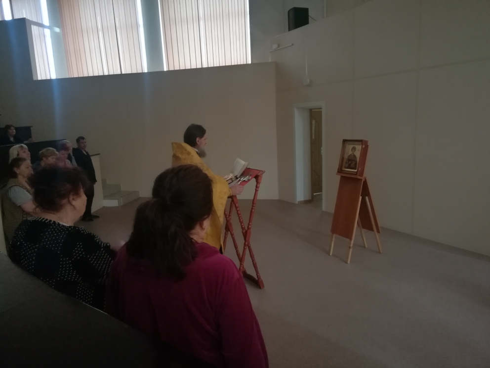 После молебна прот.Александр побеседовал с пациентами больницы о необходимости не только телесного, но и духовного целительства через участие в Таинствах Церкви.