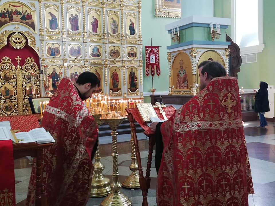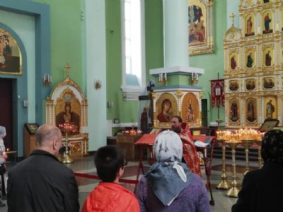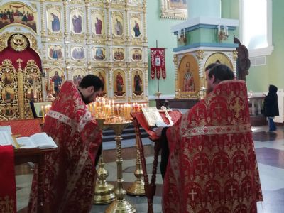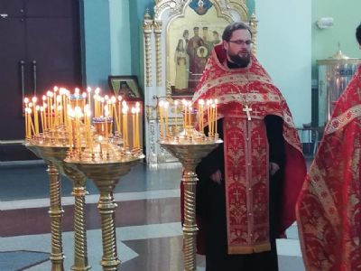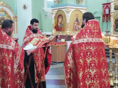 Ему сослужили благочинный I округа протоиерей Димитрий Федорин и клирик Покровского Собора иерей Владимир Брагин.