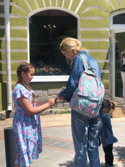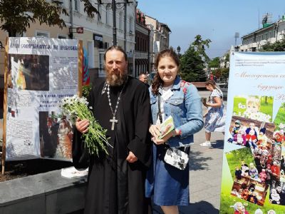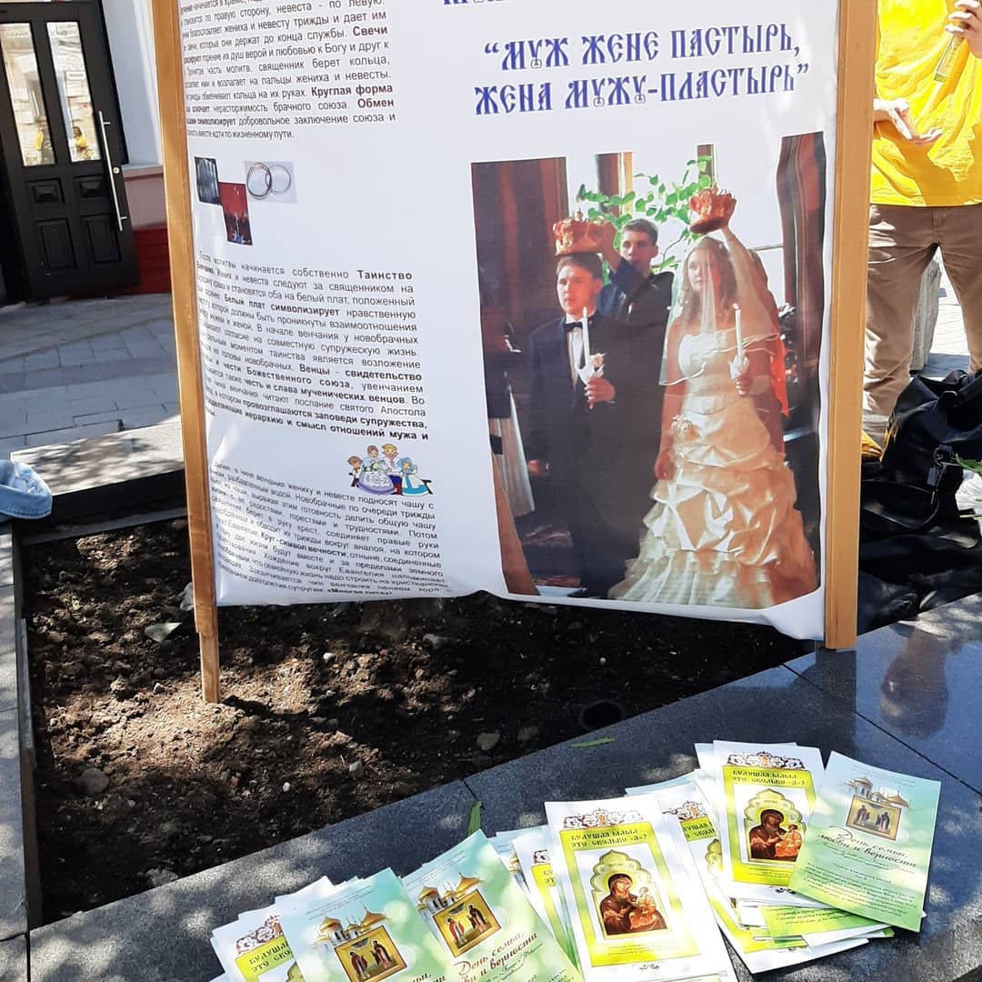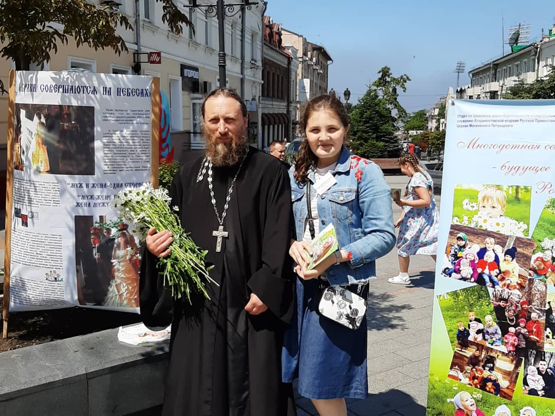 Поздравили горожан и гостей города с праздником, раздали информационные брошюры о житие Святых Петра и Февронии, о семейных ценностях, о целомудрии, о сохранении жизни (об абортах).