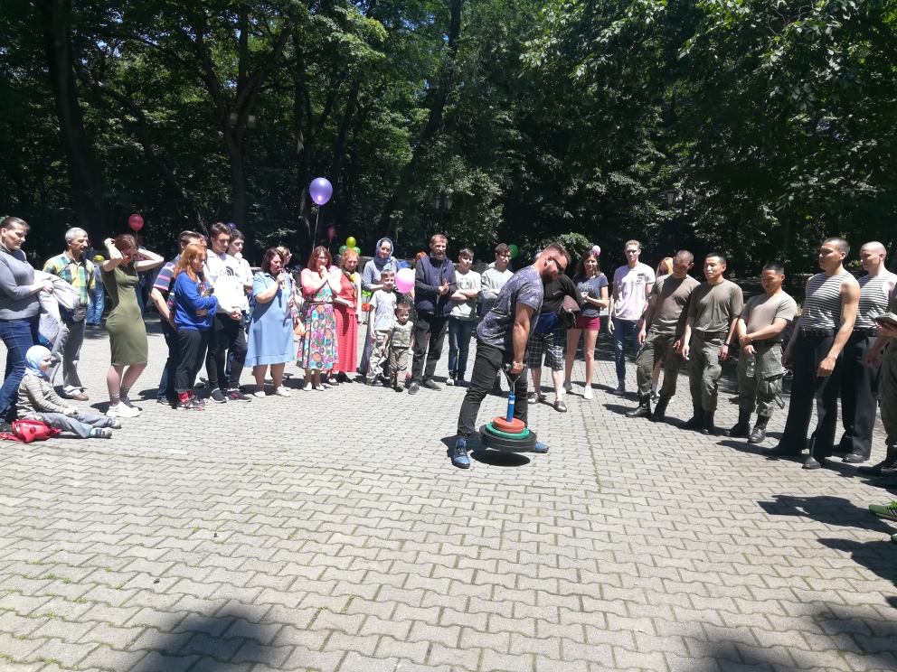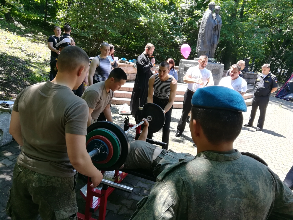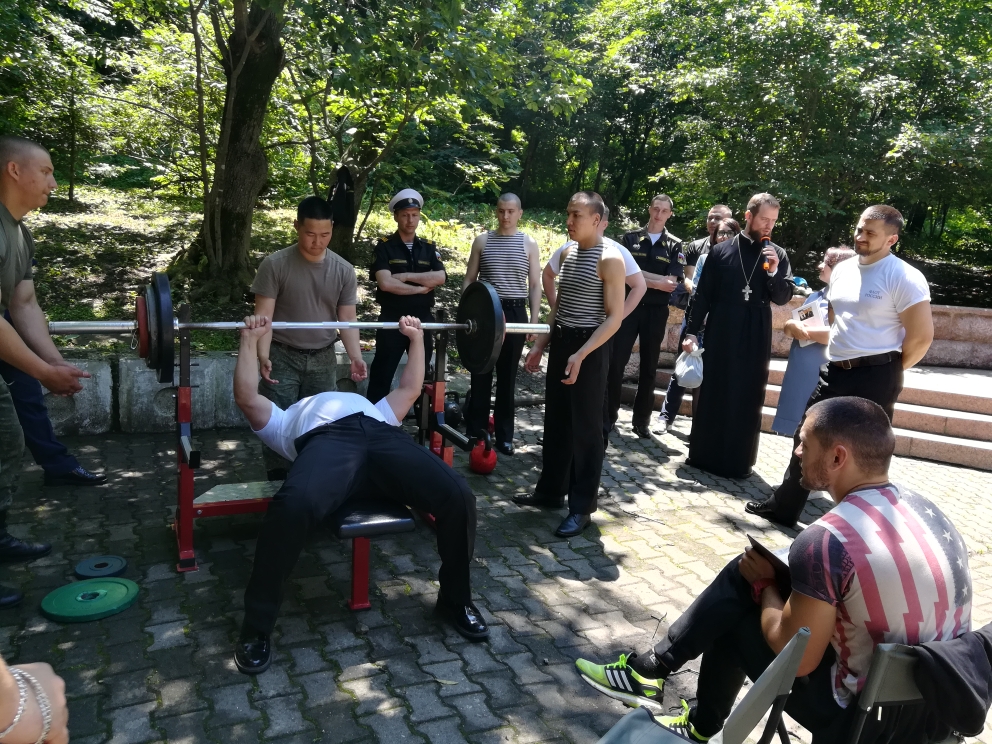 В программе: жим лежа, армлифтинг, спортивная эстафета, а также спортивные мероприятия для детей. Праздник получился масштабный и проходил на трех площадках. В соревнованиях приняли участие не только прихожане храмов города, но и военные подразделений ВВС и команда противолодочного корабля.