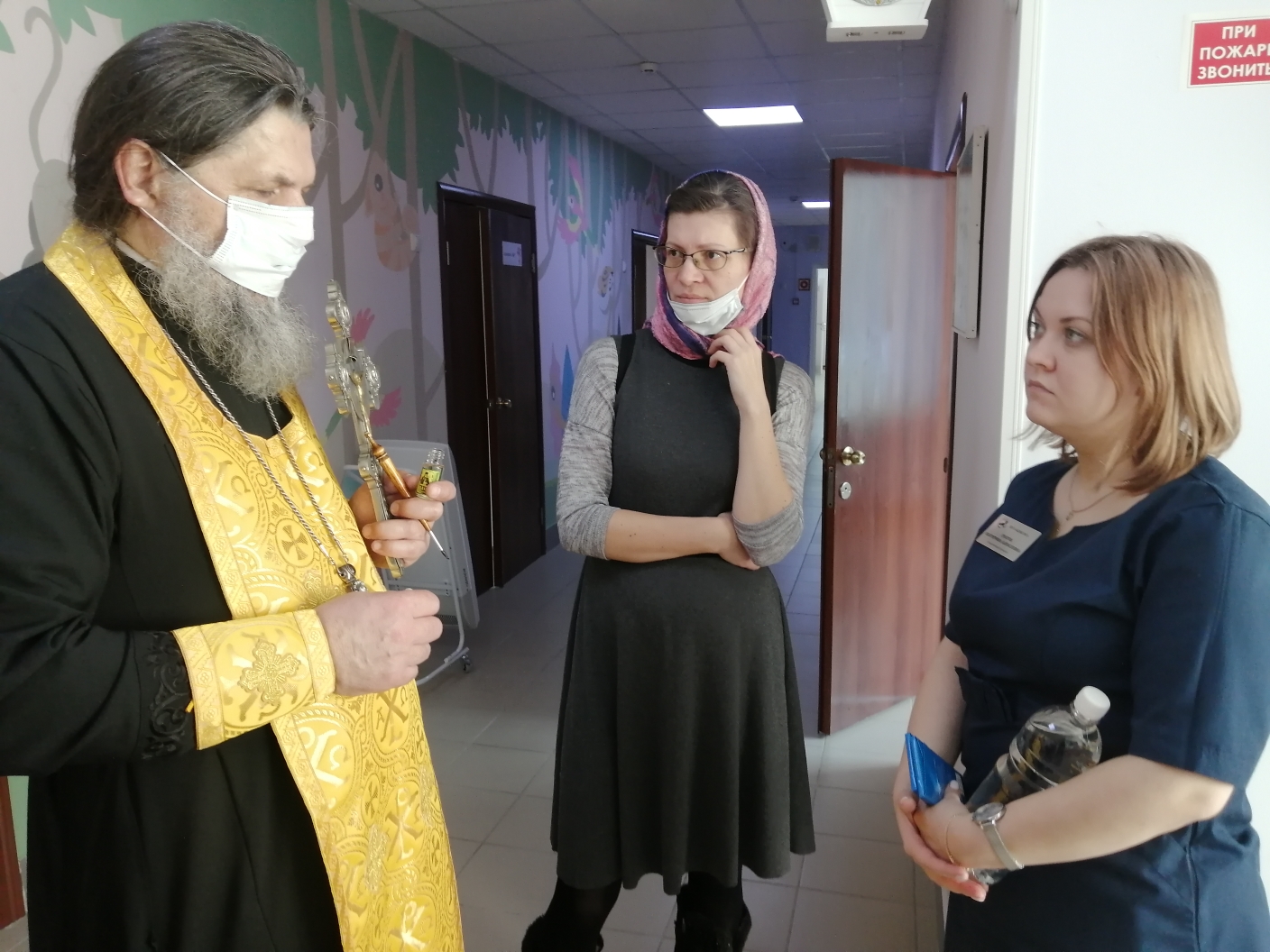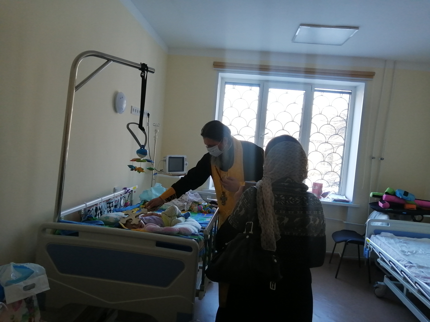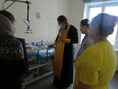 После молебна прот.Александр с добровольцами Службы «Милосердие» посетили паллиативное отделение детской больницы №2, в котором оказывают медицинскую помощь детям с неизлечимыми заболеваниями. о.Александр пообщался с родителями и помазал детей освященным маслом.