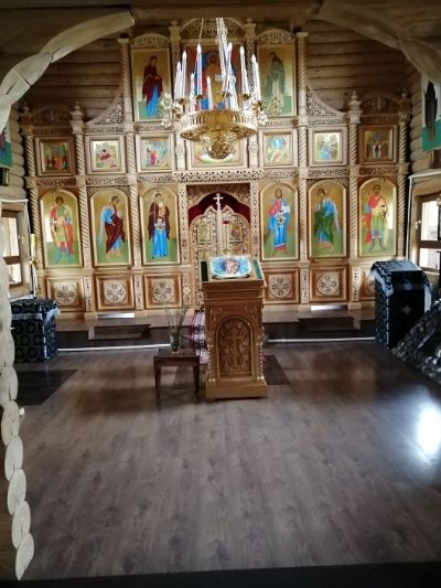 Рядом с подворьем есть храм в честь св.великомученика Димитрия Солунского. Два раза в месяц приезжает священник для совершения Богослужения.