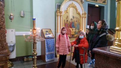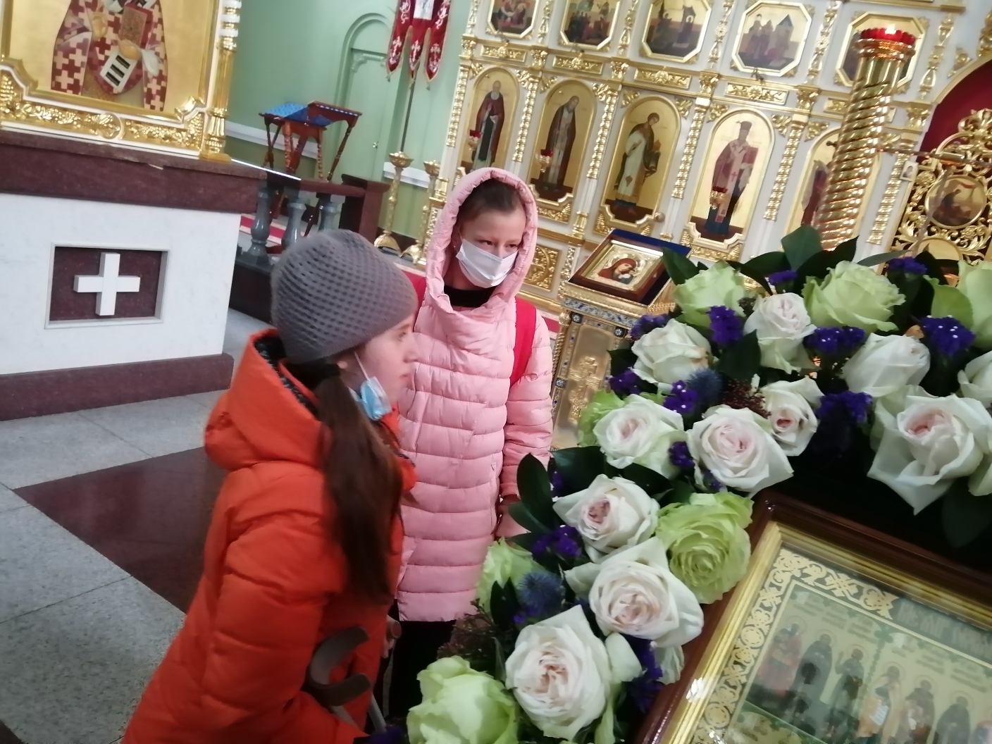 Добровольцы Службы «Милосердие» провели для ребят экскурсию по храму, рассказали об иконах, помогли поставить свечи.