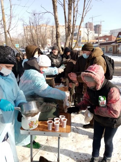 Община «Милосердие» кормит бездомных горячими обедами в любую погоду
