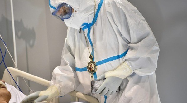 В период пандемии в Русской Православной Церкви появились специальные группы священников для посещения и пастырской поддержки больных COVID-19. В 123 епархии Синодальный отдел по благотворительности направил типовые комплекты СИЗ для посещения священниками больных.