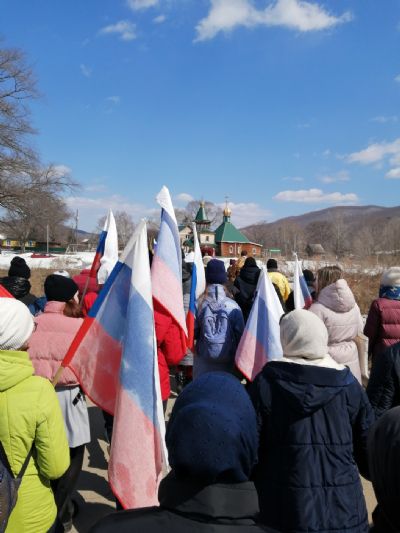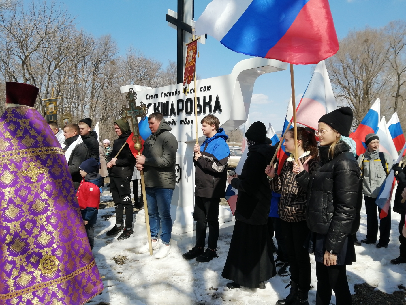 После службы прошел Крестный ход во утверждение Российской державности и возрождение Святой Руси от храма до Поклонного креста, который собрал большое количество не только приезжих гостей, но и всех жителей Кокшаровки, было много детей. Около Поклонного креста был отслужен Молебен.