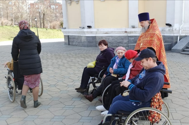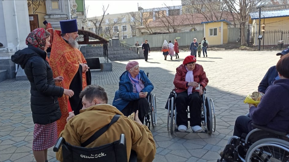 24 апреля 2022 г. Община «Милосердия» Покровского храма при поддержке социального отдела Владивостокской епархии организовали участие инвалидов в праздничном Богослужении.