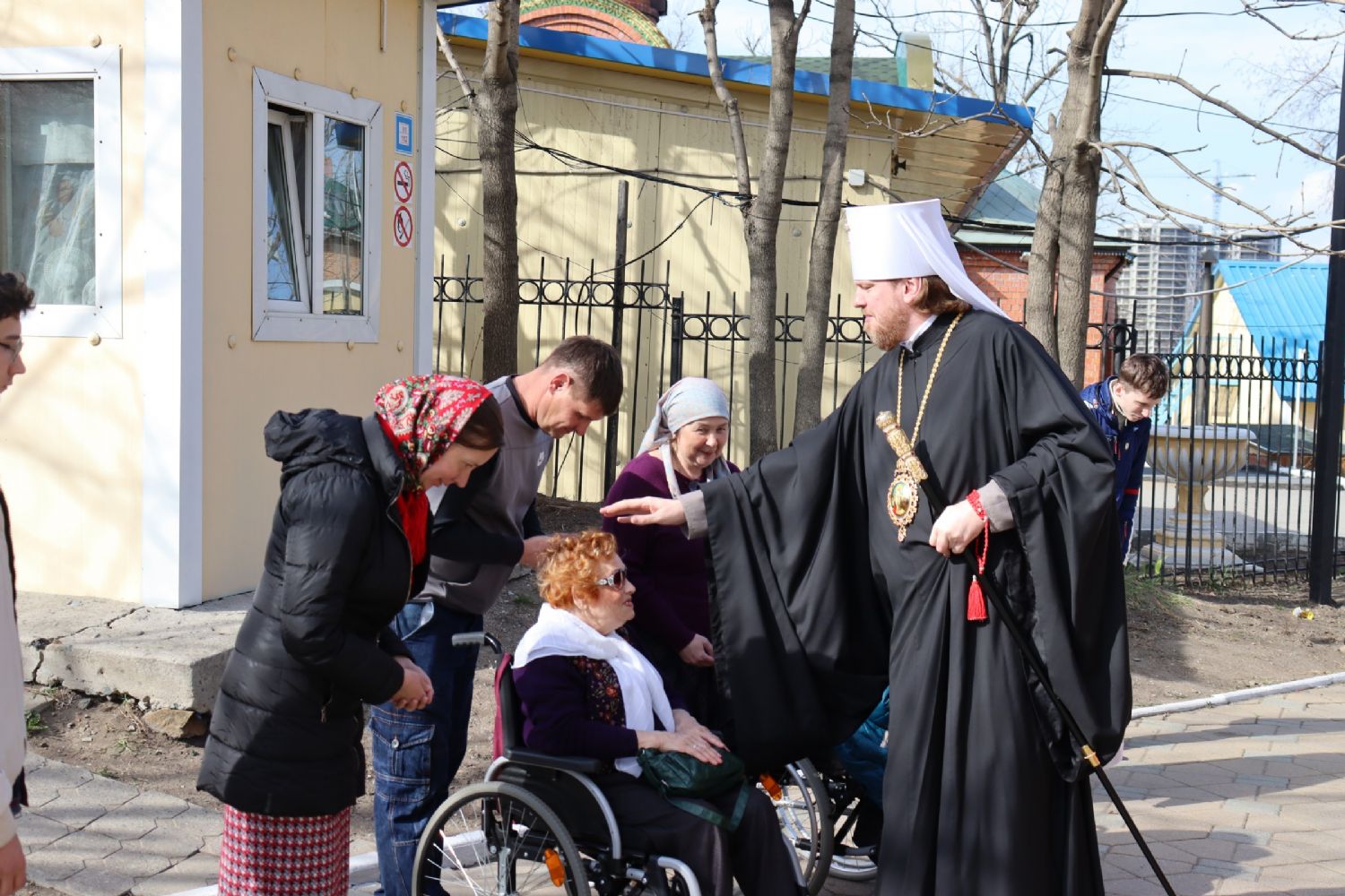 Митрополит Приморский и Владивостокский Владимир поздравил гостей из общества «Ковчег» со Светлым Христовым Воскресением и вручил пасхальные подарки.