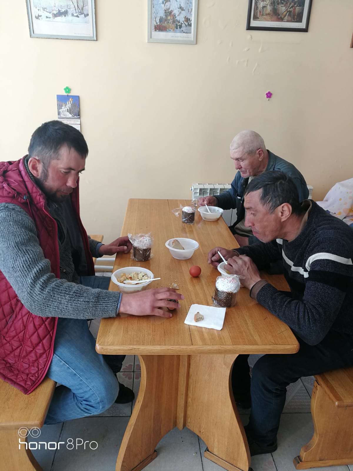 На Светлой Седмице меню в благотворительной столовой Свято-Никольского кафедрального собора пополнилось куличами и яйцами, пожертвованными прихожанами храма.
