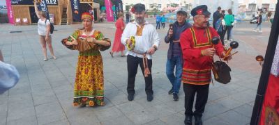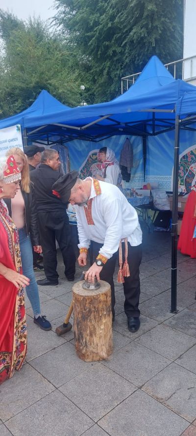 Для гостей фестиваля подготовили русскую фото-зону, угостили блинами. И все желающие могли попробовать осилить «штамповку монет».