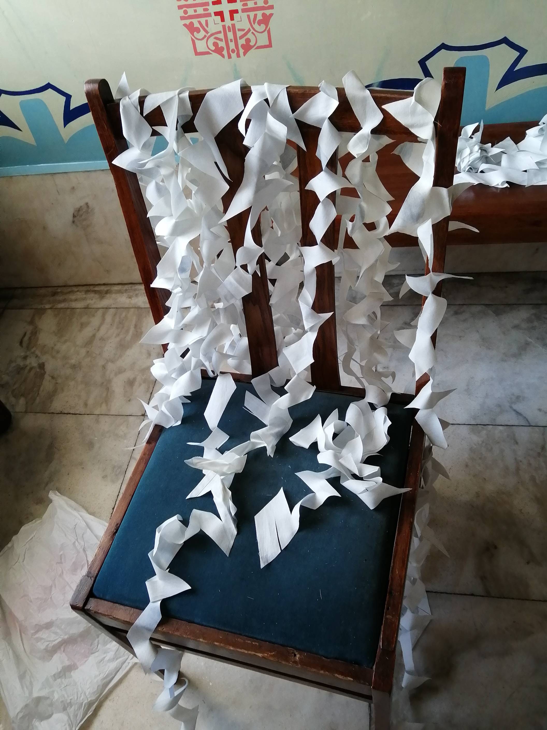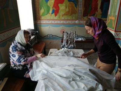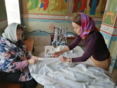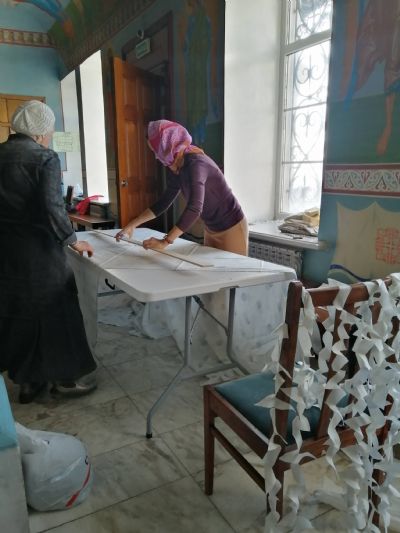 Координатор проекта Чистякова Инна: «Для нас это проект новый. Две недели, пока искали основу для сетей, просматривала опыт мастериц с запада страны, изучали виды плетения, какую ткань лучше использовать, какие расцветки нужны на осень и зиму. Наши добровольцы начали с изготовления заготовок для сетей: нарезание лент и «галстуков». Прихожане и неравнодушные граждане несут материал: отрезы тканей, тюль, жгут, веревку. Марфо-Мариинский монастырь передал больше 10 огромных мешков с материалом, а также закройные ножницы, которыми очень удобно нарезать ленты.