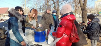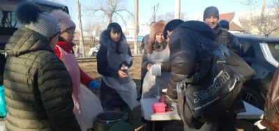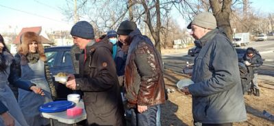 Добровольцы из Покровского собора и Свято-Андреевского храма г.Владивостока организовали кормление бездомных на Луговой по пятницам. Напомним, что Община Милосердия Успенского храма кормит бездомных 5 раз в неделю, кроме пятницы и воскресенья. Таким образом, добровольцы Покровского храма решили поддержать бездомных в пятницу горячим обедом. В меню: суп, второе и компот.