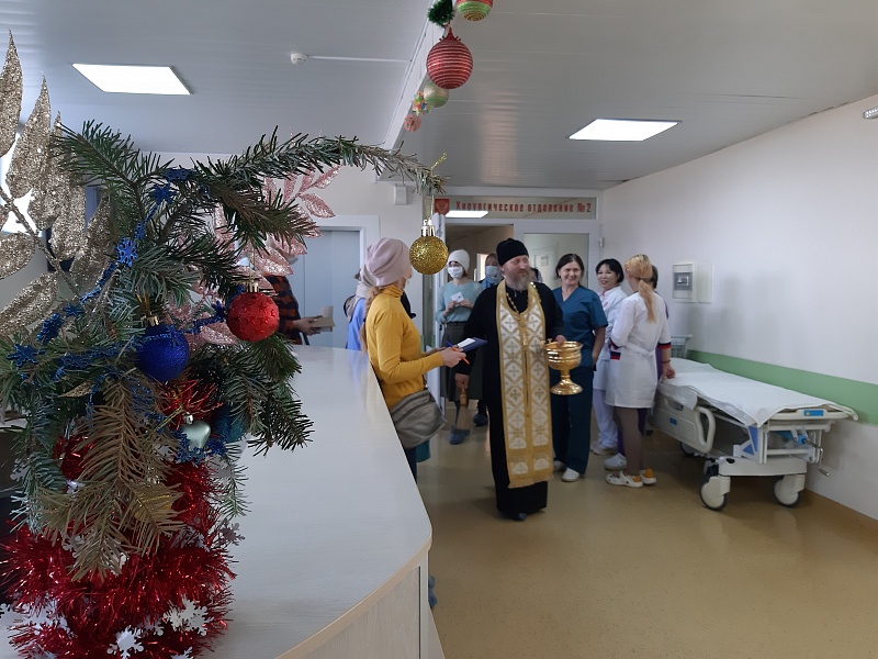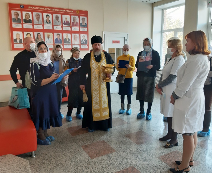 Священнослужитель вместе с прихожанами храма новомучеников и исповедников Церкви Русской посетил травматологическое, ожоговое, терапевтическое, реабилитационное, а также хирургическое отделение № 2 ДВОМЦ ФМБА России.