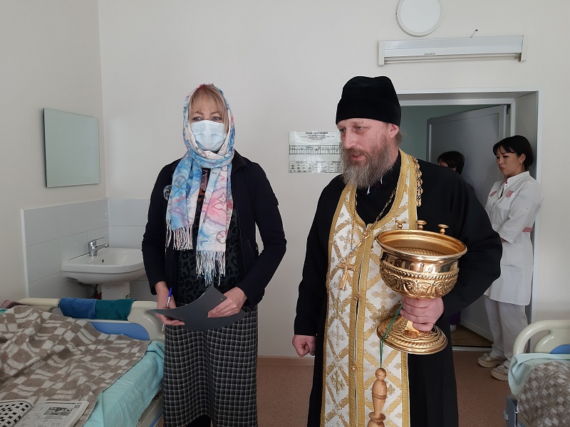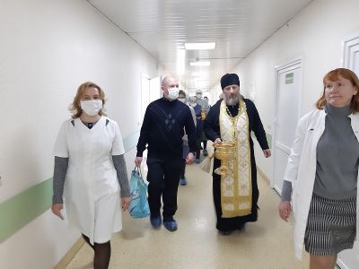 В каждой палате прихожане пели церковные песнопения, записывали имена всех желающих, чтобы помолиться за них в храме, а протоиерей Андрей окроплял пациентов святой водой.