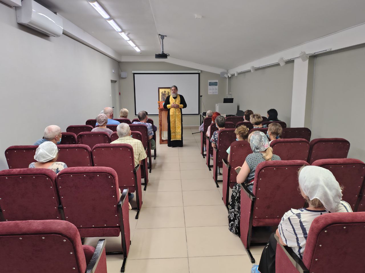 После молебна отец Александр исповедовал желающих. Добровольцы, сопровождавшие священника, раздали пациентам и медикам небольшие иконки и тексты молитв ко Пресвятой Богородице.