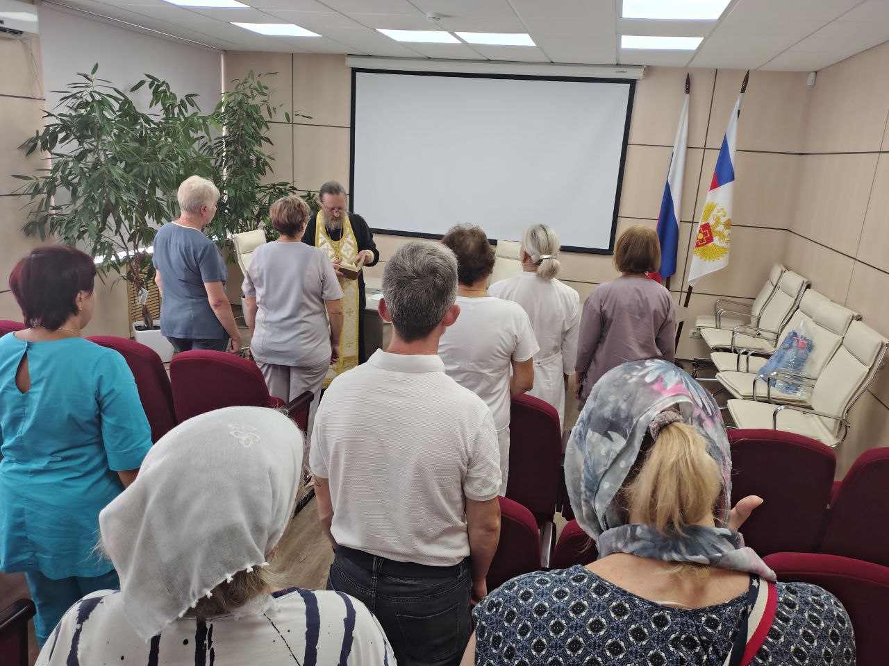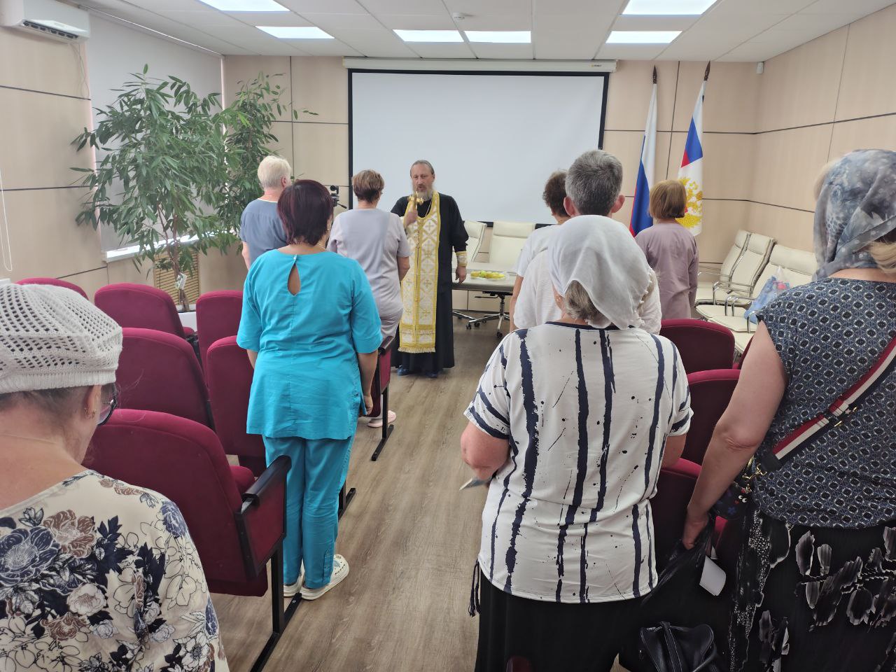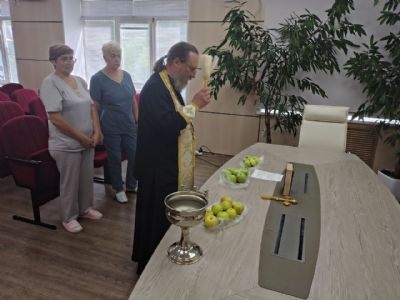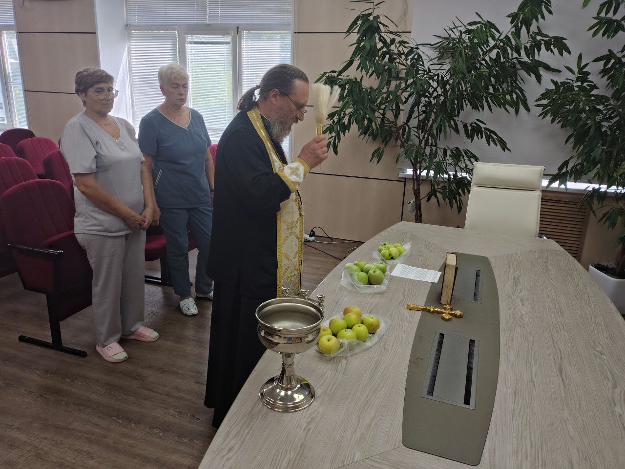 Молебен, посвященный Преображению Господню, собрал в одном из помещений центра врачей, медсестер и сотрудников. Многие принесли с собой яблоки, следуя древней традиции. Отец Андрей отслужил молебен, в ходе которого были вознесены особые прошения о здравии всех трудящихся и пациентов центра, а также о даровании мудрости и сил медицинским работникам. По завершении молитвы священник окропил собранные плоды святой водой.