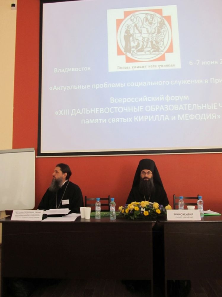6 - 7 июня 2013 года в малом зале Тихоокеанского государственного медицинского университета в рамках Всероссийского форума «XIII ДАЛЬНЕВОСТОЧНЫЕ ОБРАЗОВАТЕЛЬНЫЕ ЧТЕНИЯ памяти святых КИРИЛЛА и МЕФОДИЯ состоялись рабочие заседания секции «Актуальные проблемы социального служения в Приморье» и конференции «Церковь и медицина: пути взаимодействия», а также прошел круглый стол «Социальная ответственность медицины: доступность медицины - право на жизнь, сохранение здоровья».