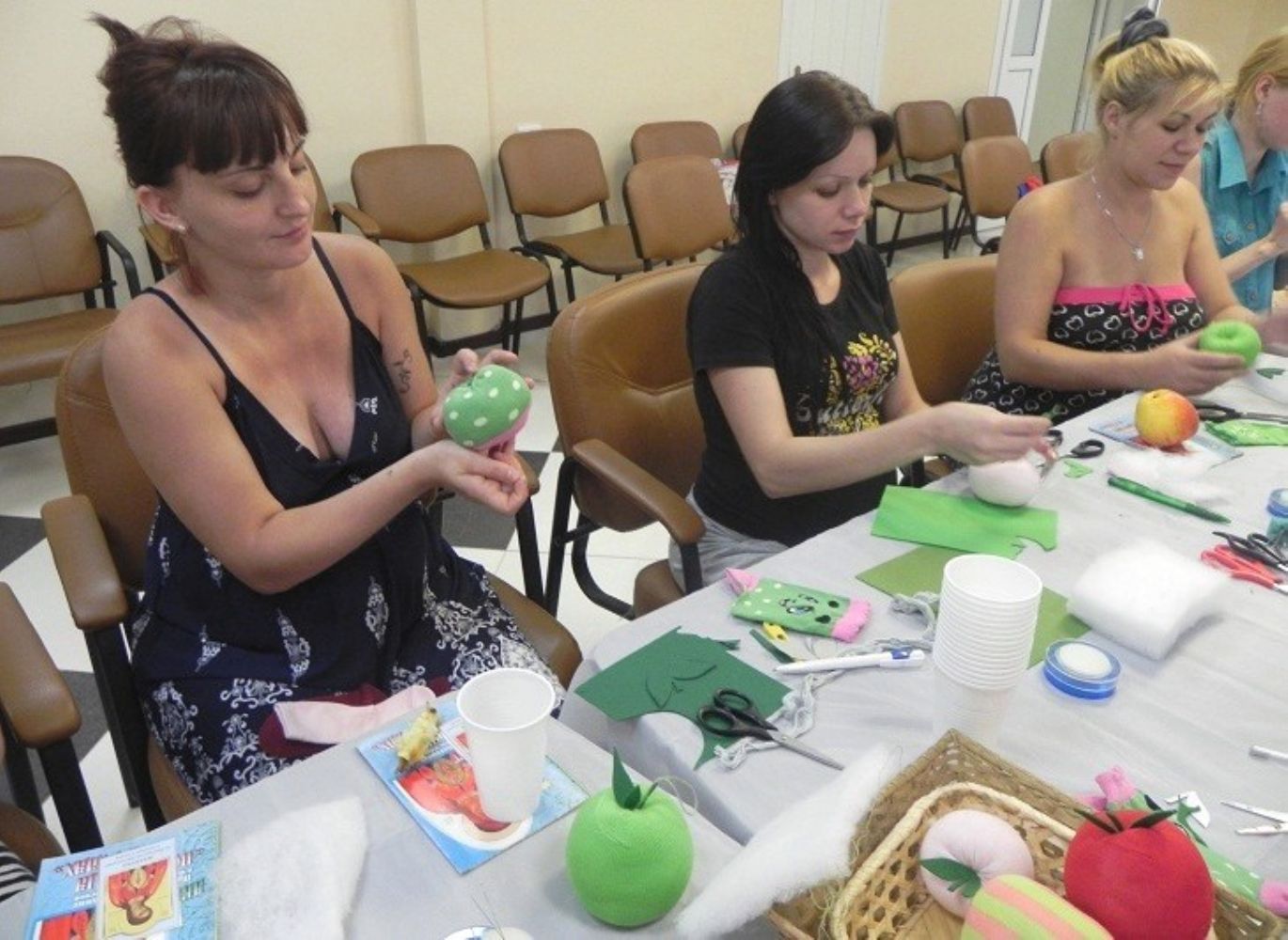 Продолжился праздник занятием в творческой мастерской роддома «Мамины руки». Под руководством опытных дизайнеров женщины, ожидающие рождения ребенка, их родные и близкие смогли создать уникальные поделки – они будут греть души как самих авторов, так и их малышей, которым вскоре предстоит появиться на свет. Примечательно, что стилистика работ была непосредственно связана с тематикой Яблочного Спаса.