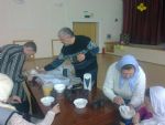 Владивосток-Седанка. Накануне Великого поста клирик Владивостокской епархии игумен Никита (Зеленюк) посетил Седанкинский дом престарелых и инвалидов - вместе с добровольцами из Епархиальной службы «Милосердие». Православные волонтеры устроили для подопечных дома-интерната чаепитие с блинами. Две именинницы получили подарки.
