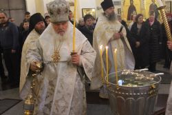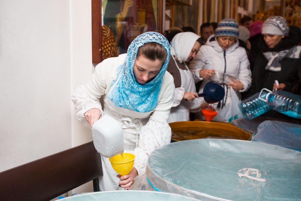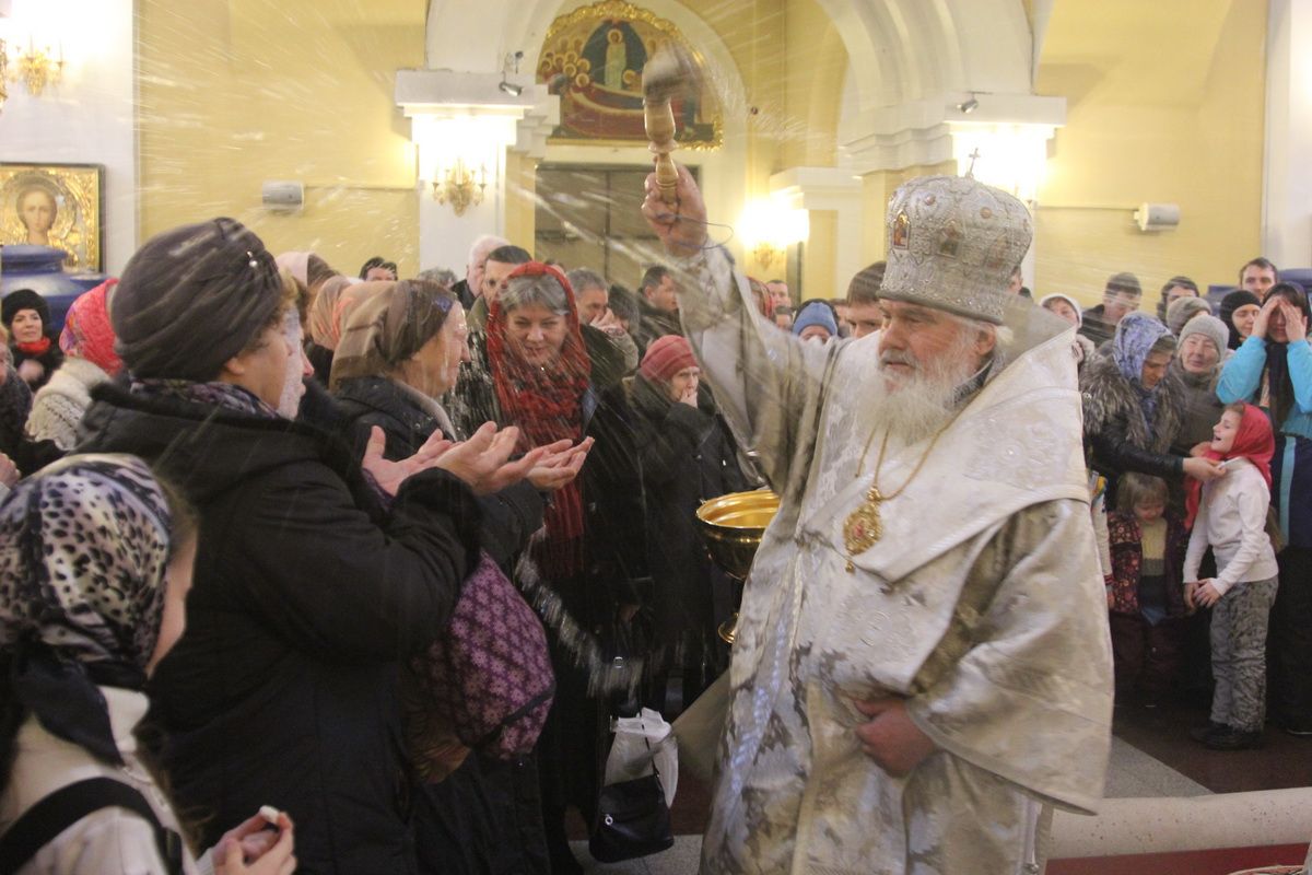 19 января православные отмечают великий Праздник Крещения Господня или Богоявления. Накануне, в Крещенский сочельник, 18 января 2016 года, в храмах состоялись богослужения с чином великого освящения воды. В день праздника Крещения Господня в некоторых храмах проходила ночная литургия, по окончании которой совершалось Великое освящение воды. В этот праздник есть традиция освящения иордани – специальной проруби в форме креста. В память о Крещении Иисуса Христа в водах Иордани верующие окунаются в водные источники даже в самый трескучий мороз.