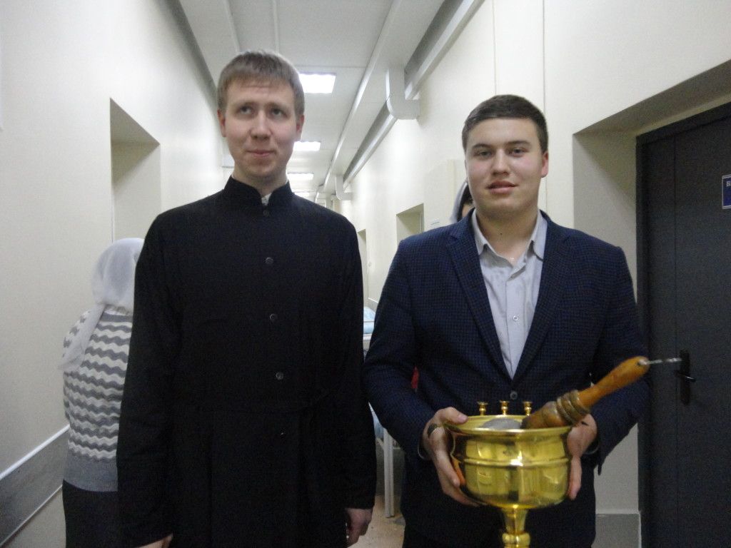 Добровольцы Успенского храма Владивостока по благословению настоятеля епископа Иннокентия – доставили великую Агиасму болящим. В праздник Крещения Господня волонтеры и сестры Общины милосердия Успенского храма посетили Владивостокскую клиническую больницу № 1 (на Первой Речке). В день Богоявления после праздничной литургии и чина освящения воды добровольцы поспешили в больницу – вместе с иподиаконом Михаилом прошли по палатам хирургического и гнойно-хирургического отделений, поздравили с Крещением и окропили святой водой всех желающих – как пациентов, так и посетителей. В ординаторской, по просьбе врачей, окропили не только стены, но и оргтехнику и даже документы. Оставшуюся после окропления крещенскую воду раздали персоналу и болящим, пожелавшим иметь у себя эту святыню.
