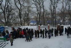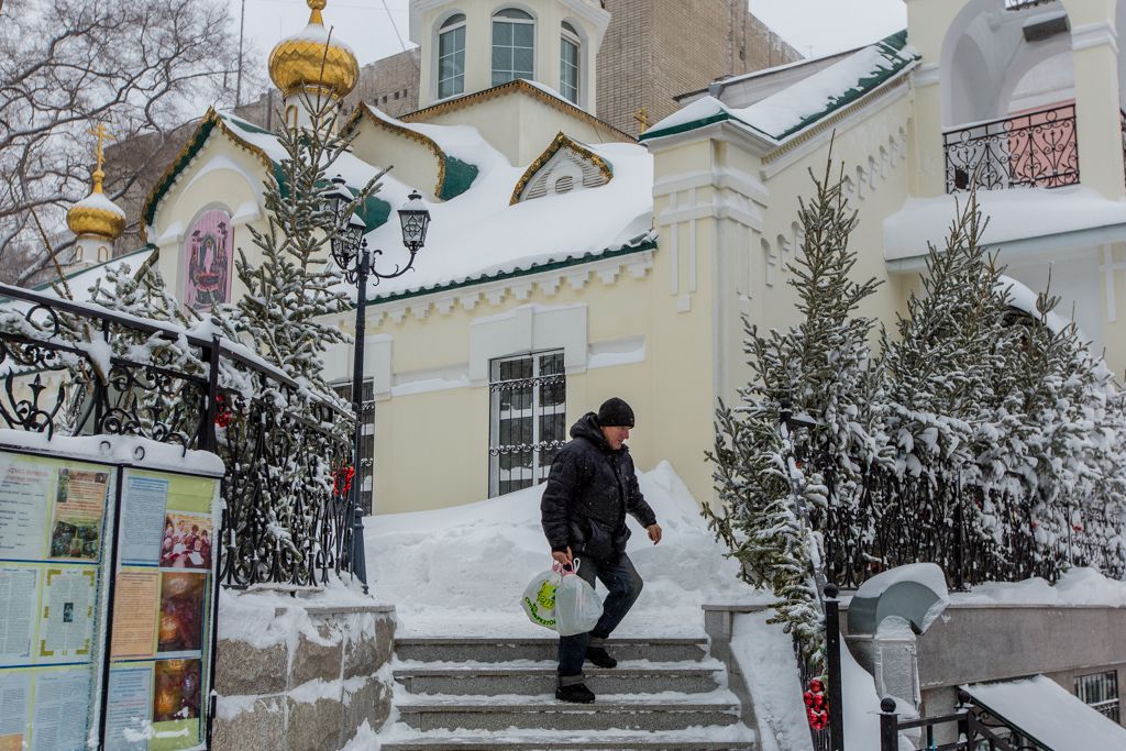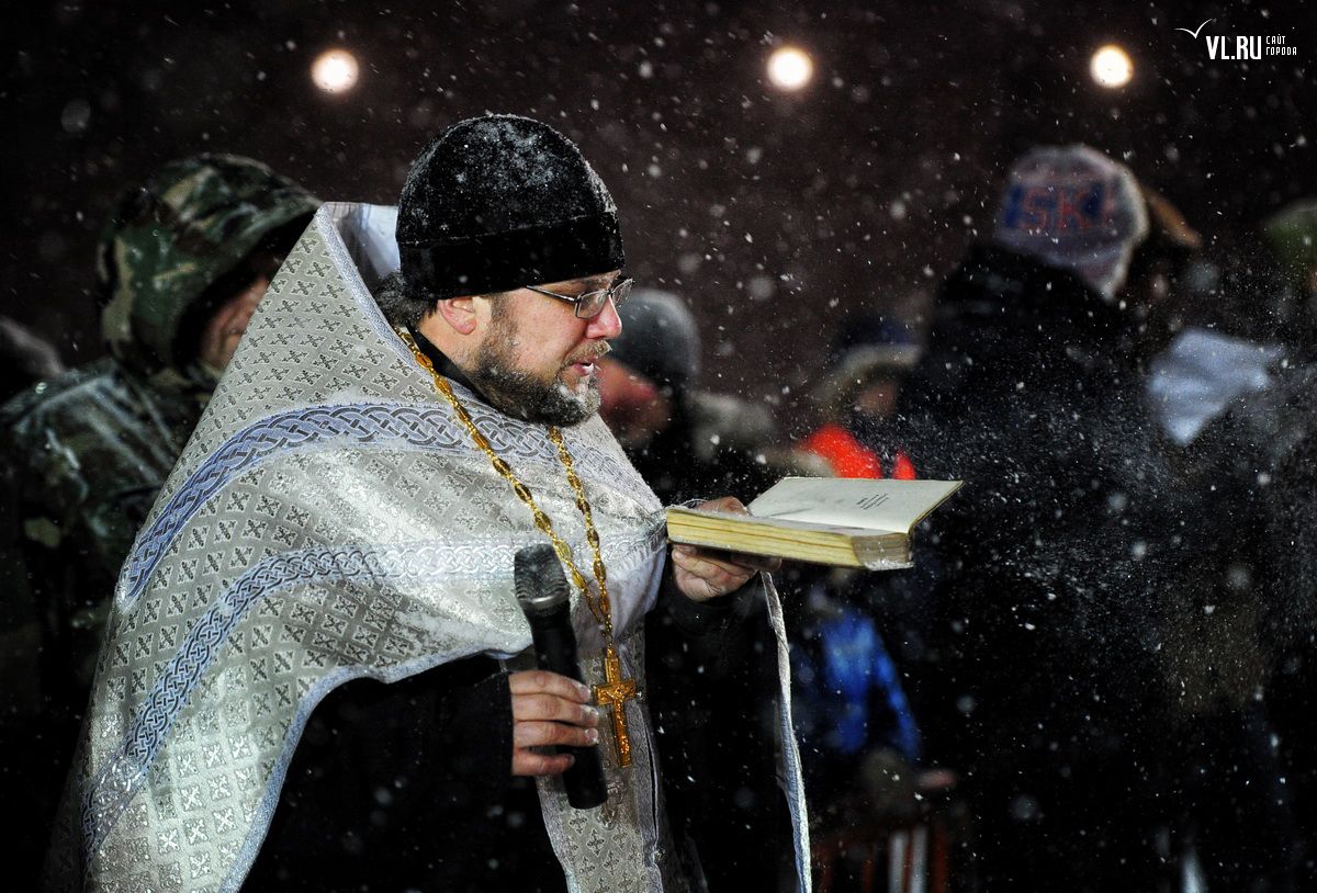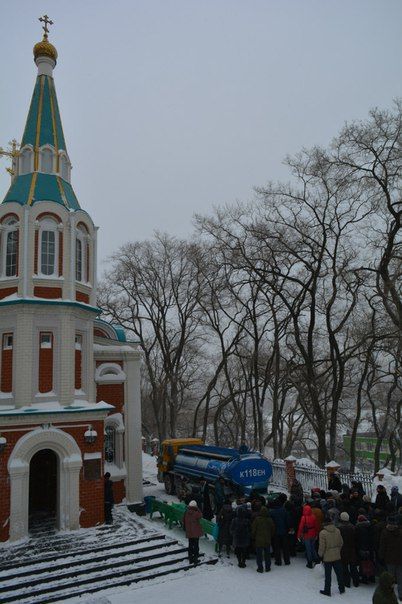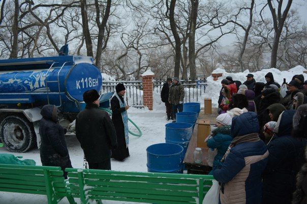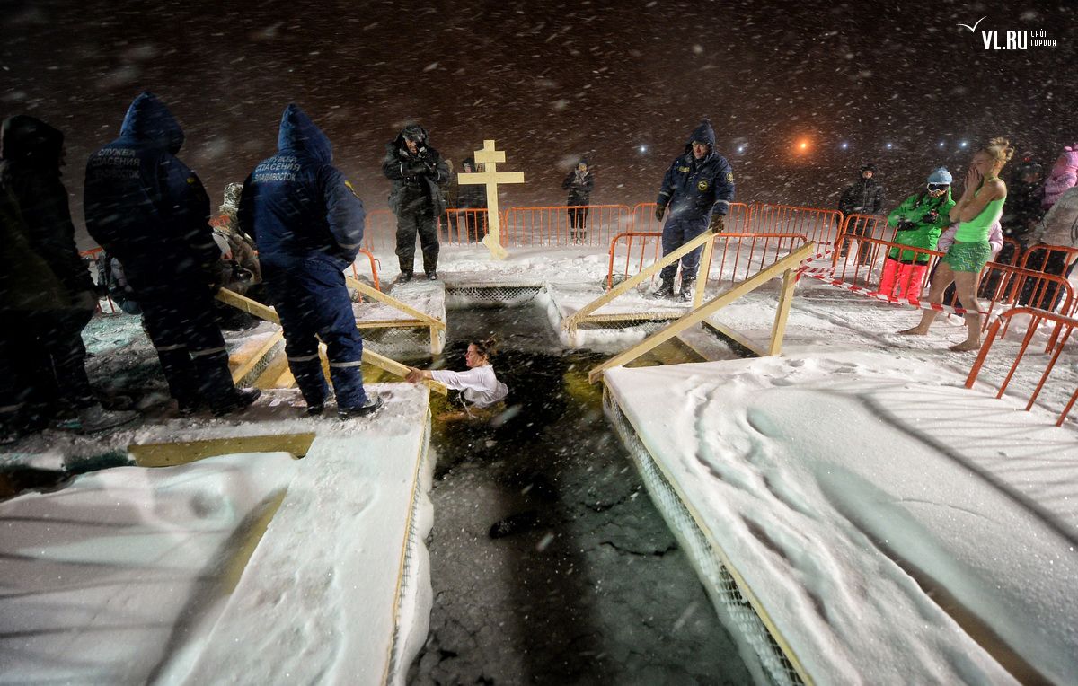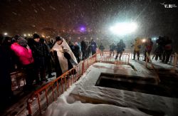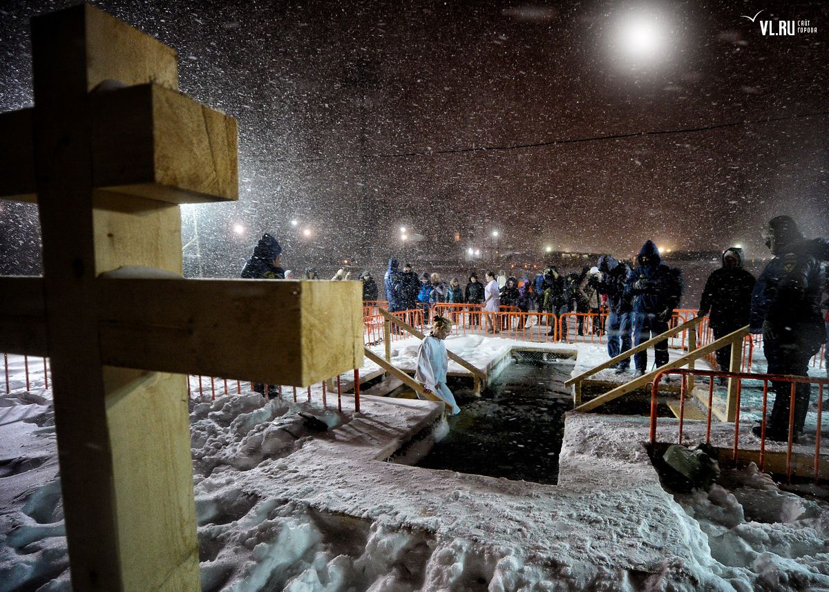 Несмотря на метель в ночь на 19 января, 1500 владивостокцев совершили омовение в «Иордани» на Спортивной набережной. На приходах Приморья освящено десятки тонн святой воды.
