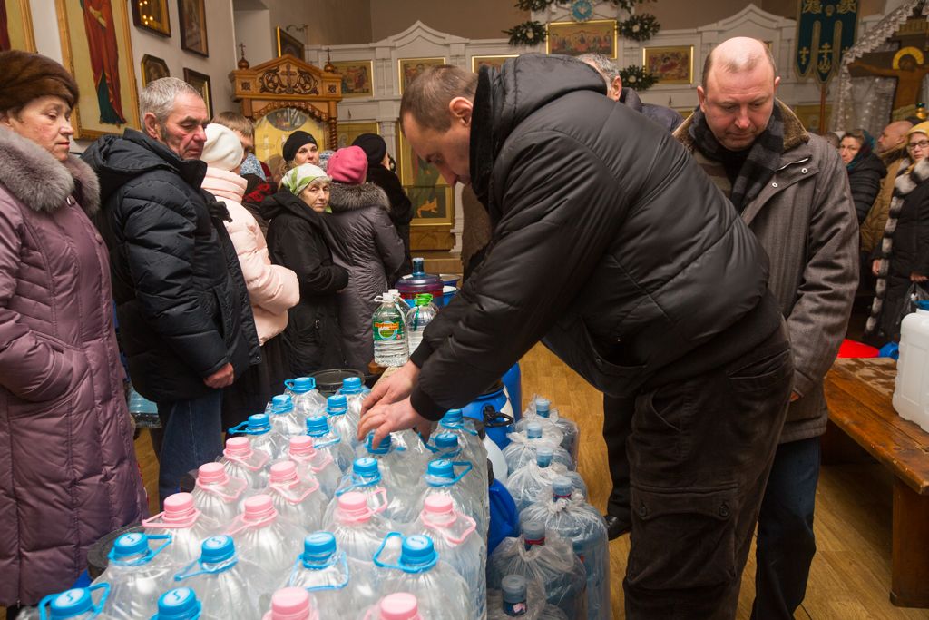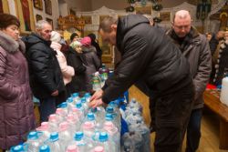 Служащие и добровольцы раздавали молитвы на принятие святой воды, информационные листки о святой воде, приходские газеты.