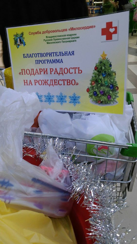 По благословению митрополита Владивостокского и Приморского Вениамина Добровольческая служба "Милосердие" Отдела по церковной благотворительности и социального служения Владивостокской епархии РПЦ традиционно провела акцию "Подари радость на Рождество". Помощь получают