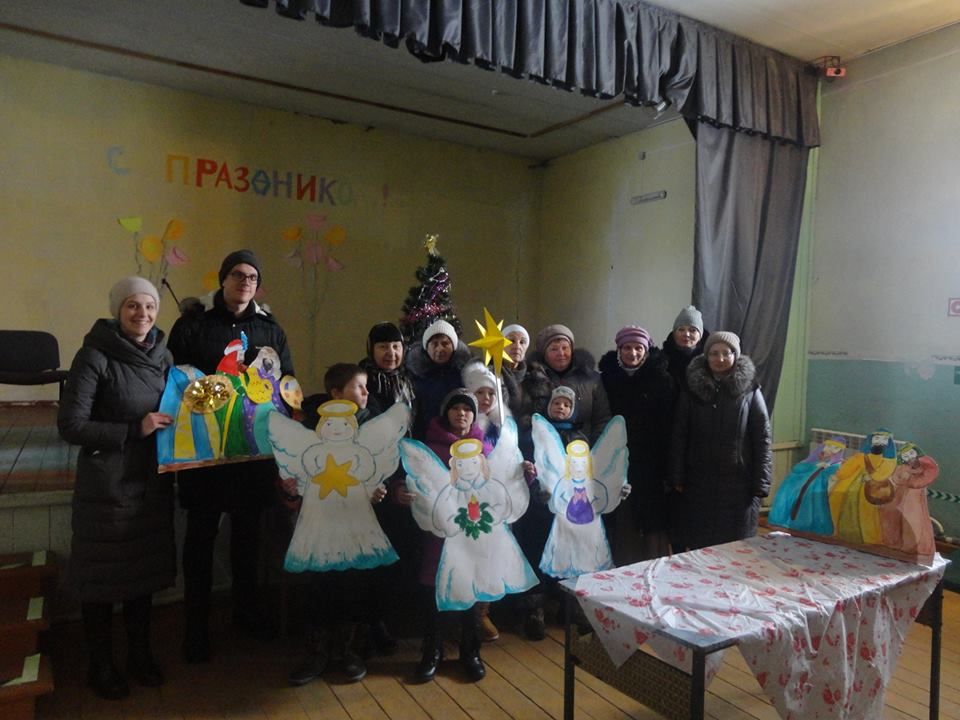 14 января еще продолжаются Святки и на праздник в клуб пришли дети и бабушки за подарками для внуков. Иерей Евгений отслужил молебен и поздравил с Рождеством Христовым и приближающимся Крещением Господним. Наталья Чуланова и Никита Плесский установили импровизированный вертеп и рассказали об истории праздника Рождества. Дети получали призы за правильные ответы на вопросы православной викторины. И по традиции встреча закончилась совместным чаепитием и раздачей подарков.