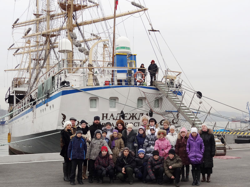 А вот прихожане и воспитанники воскресной школы Свято-Никольского кафедрального собора посетили этой зимой парусник «Надежда», принадлежащий Морскому государственному университету им. Г. И. Невельского.