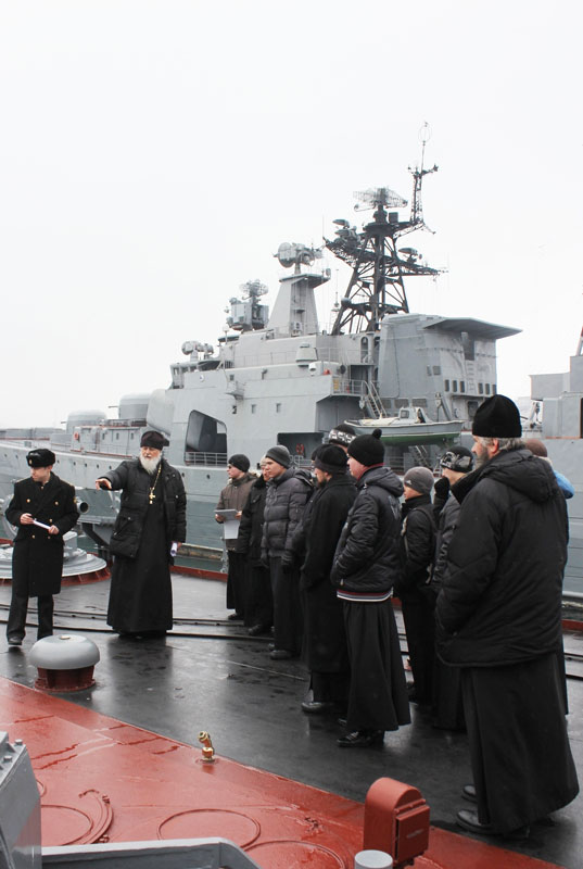 В преддверии Дня защитника Отечества представители Епархиального управления, прихожане храмов, студенты и воспитанники воскресных школ посещают военные и учебные корабли.